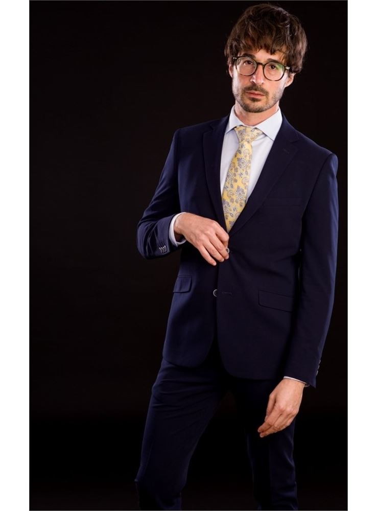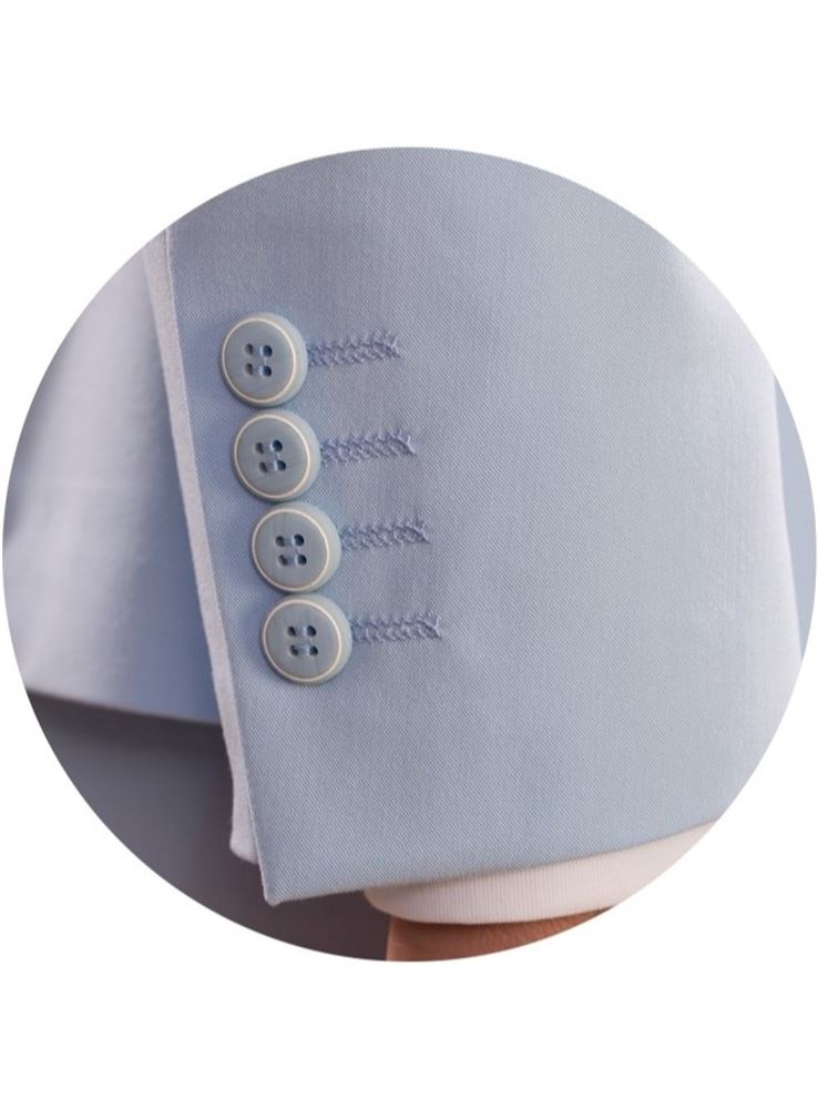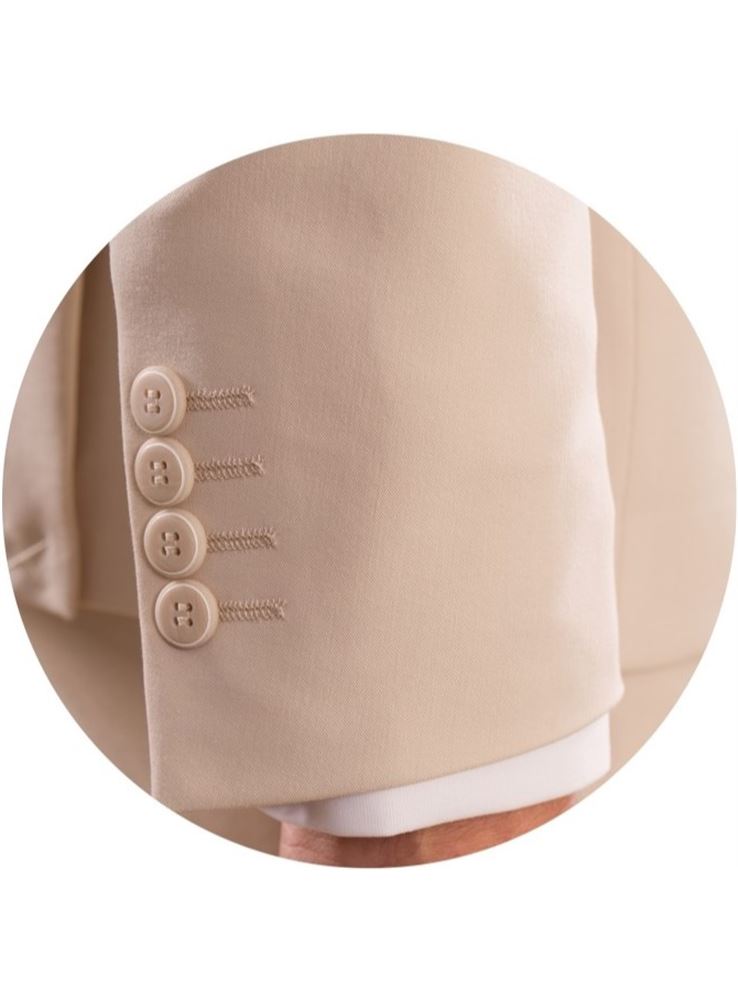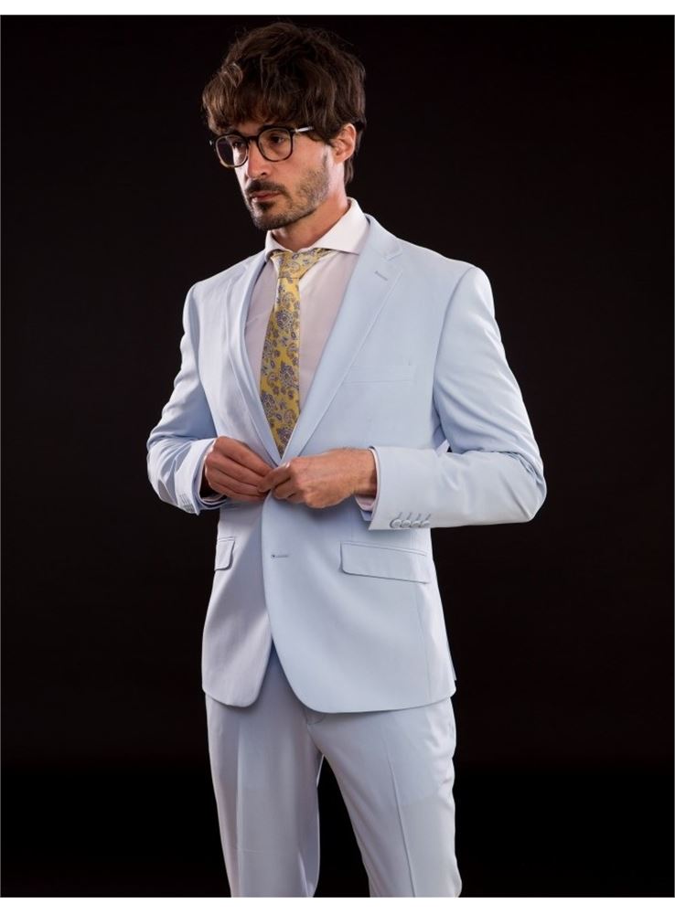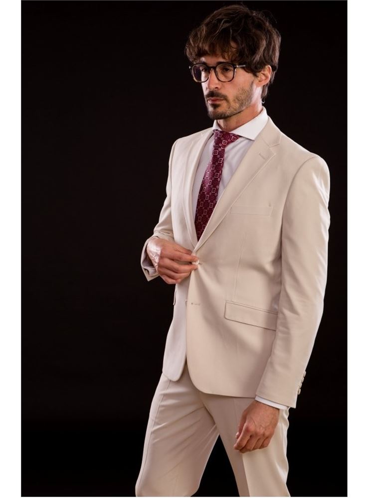 Traje de corte SUPER SLIM FIT, el traje donde marcar tu figura es una apuesta segura ya que su entalle es máximo, bolsillos inclinados con cerillera y tapeta, pantalón de tiro corto con cinturilla elástica adaptable y bajo de 16, el largo de la americana es 71.