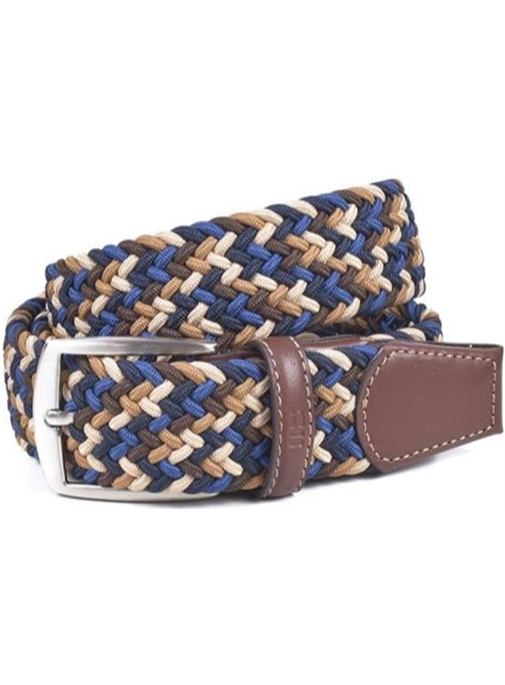 Cinturón textil trenzado en distintos colores con detalles en auténtica piel de vacuno.