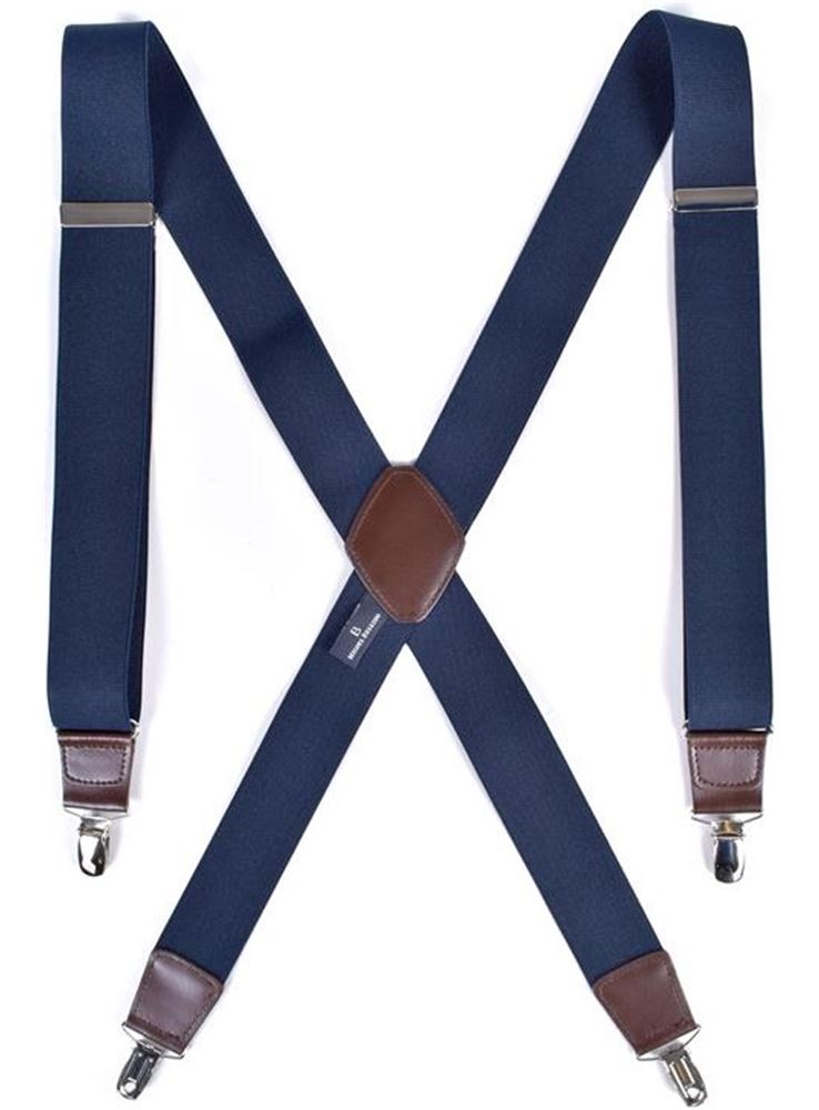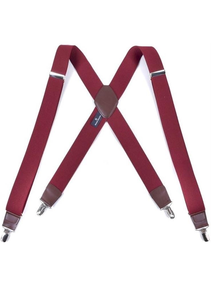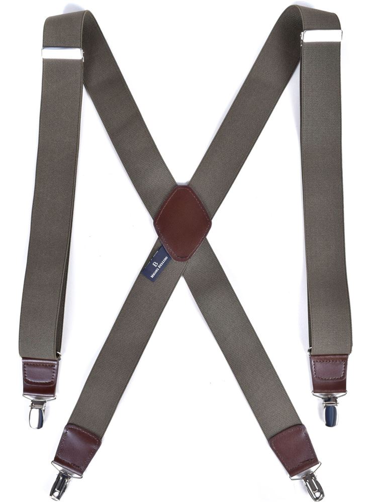 Tirantes de cuatro pinzas, con cinta elástica de longitud ajustable, con piel legítima en los terminales y cruce de espalda, y con el logotipo de la marca grabado a fuego.