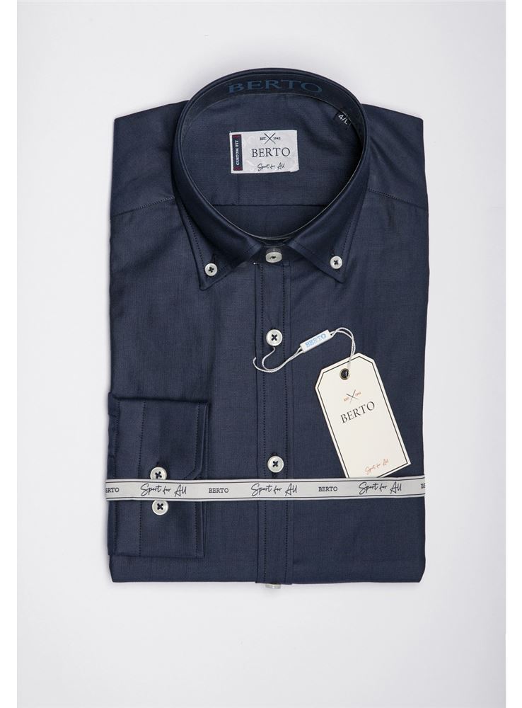 Camisa de caballero sport en manga larga y color liso de la firma Berto International.