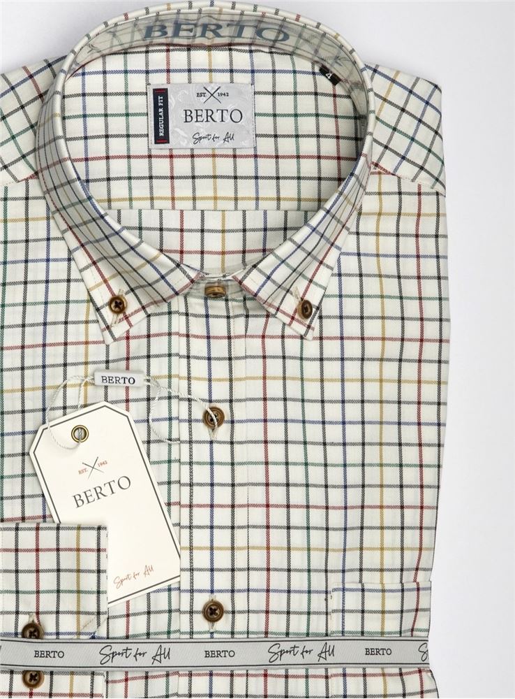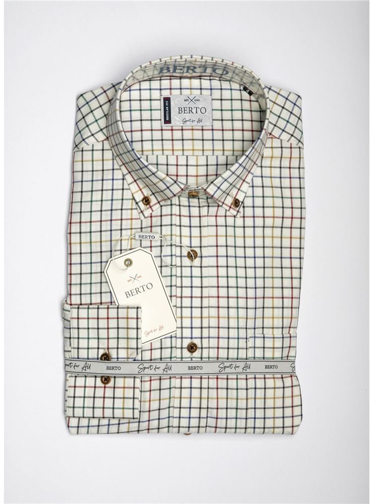 Camisa de caballero sport en manga larga y dibujo de cuadros, en tejido viella, de la firma Berto International.