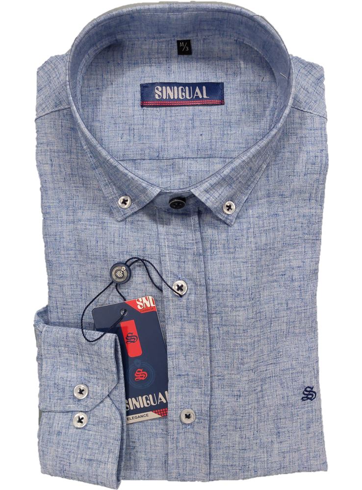 Prenda de tipo sport realizada en patron Slim Fit, de manga larga con puño de doble boton y cuello americano también abotonado.