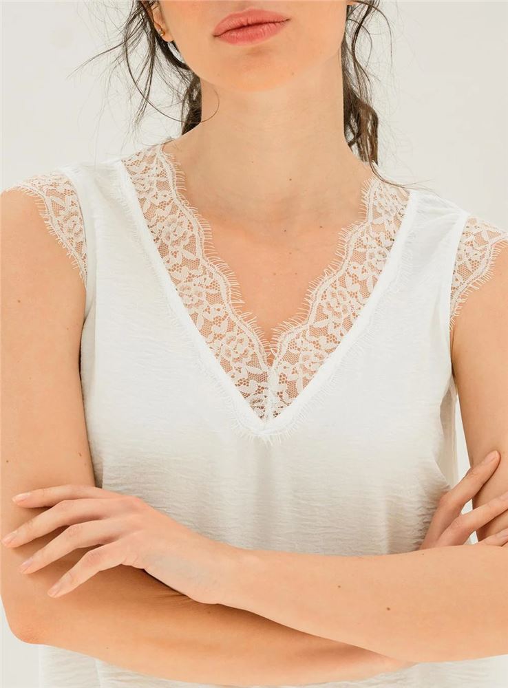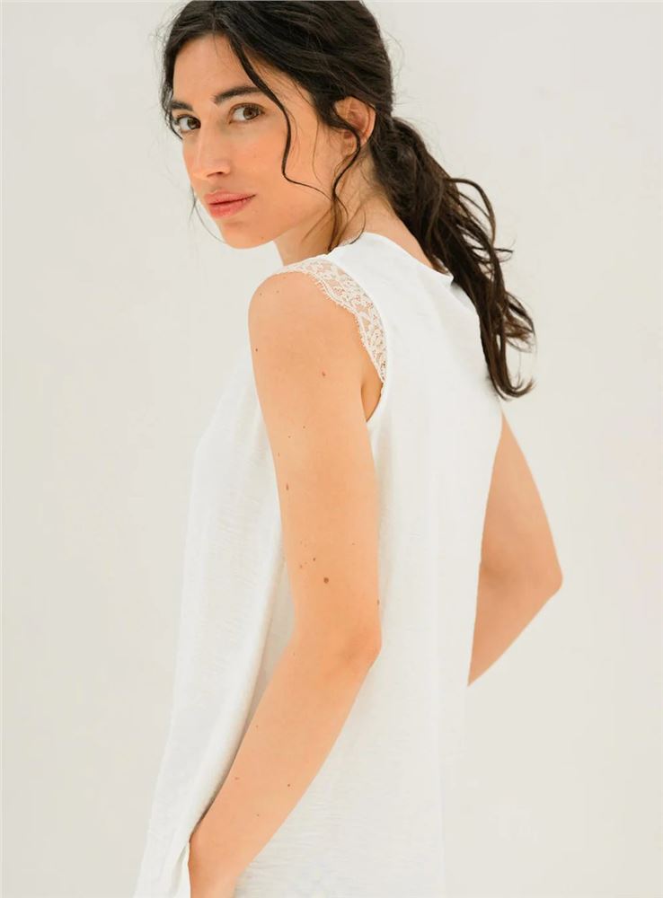 Top lencero fluido en distintos colores con detalles de encaje de la marca Tinta Style, diseñado y fabricado en España.