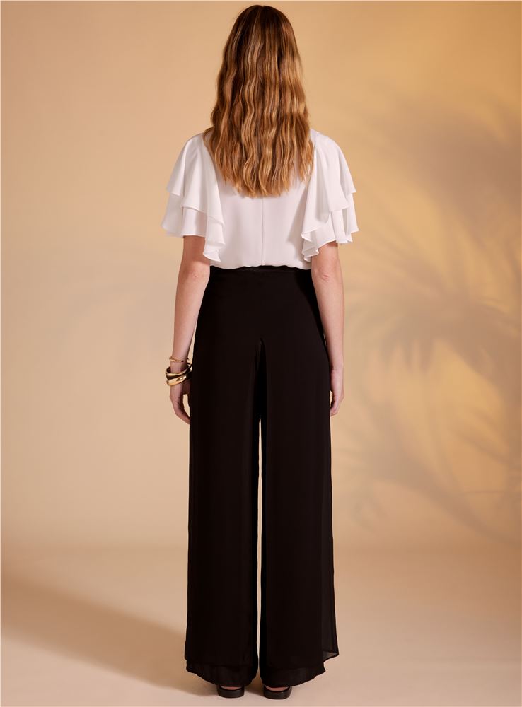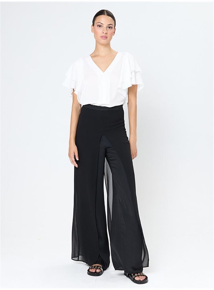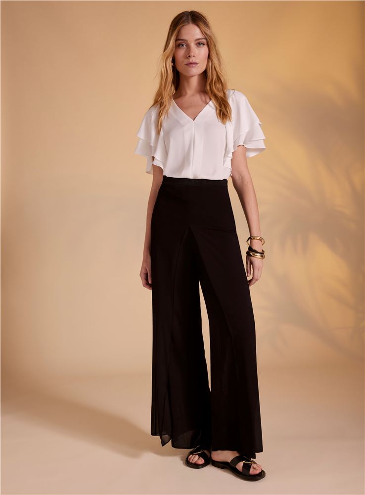 Confeccionada en elegante escote a pico con marcada costura central. Muy elegante con sus mangas acampanadas a capas.