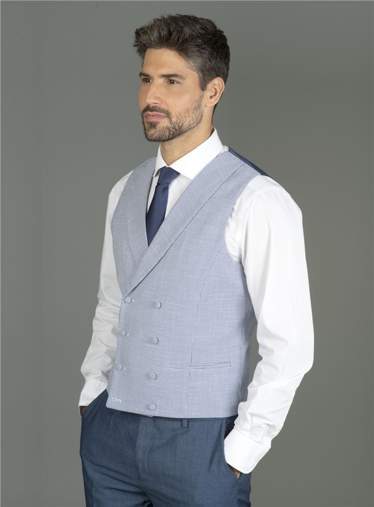 Elegante chaleco cruzado con solapa para traje de caballero confeccionado por la firma Capelhi en color azul.