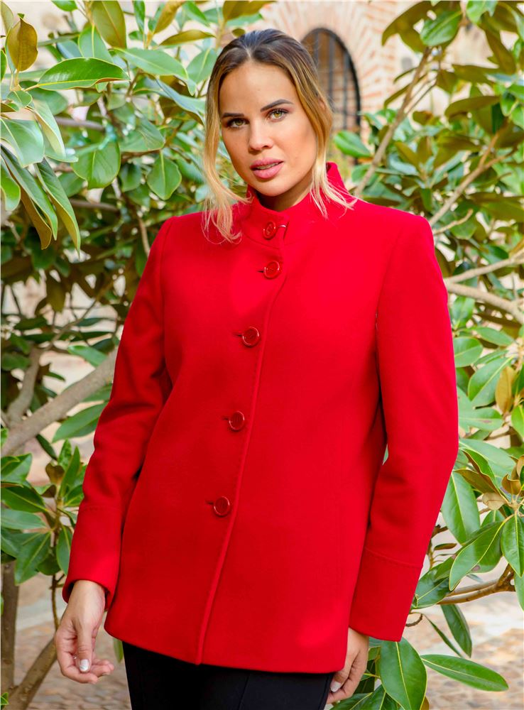 Clasico chaqueton de mujer con favorecedor cuello tirilla y cerrado con abotonadura. Practicos bolsillos laterales rasgados en vertical, costadillos laterales delanteros y traseros que estilizan la figura. Con su perfecta composicion 70% lana, 20% poliester y 10% cachemira han conseguido una prenda muy calida al igual que ligera. Largo aproximado de 70 centimetros.