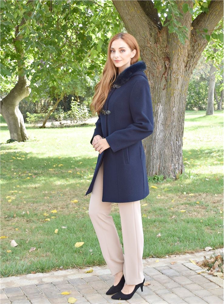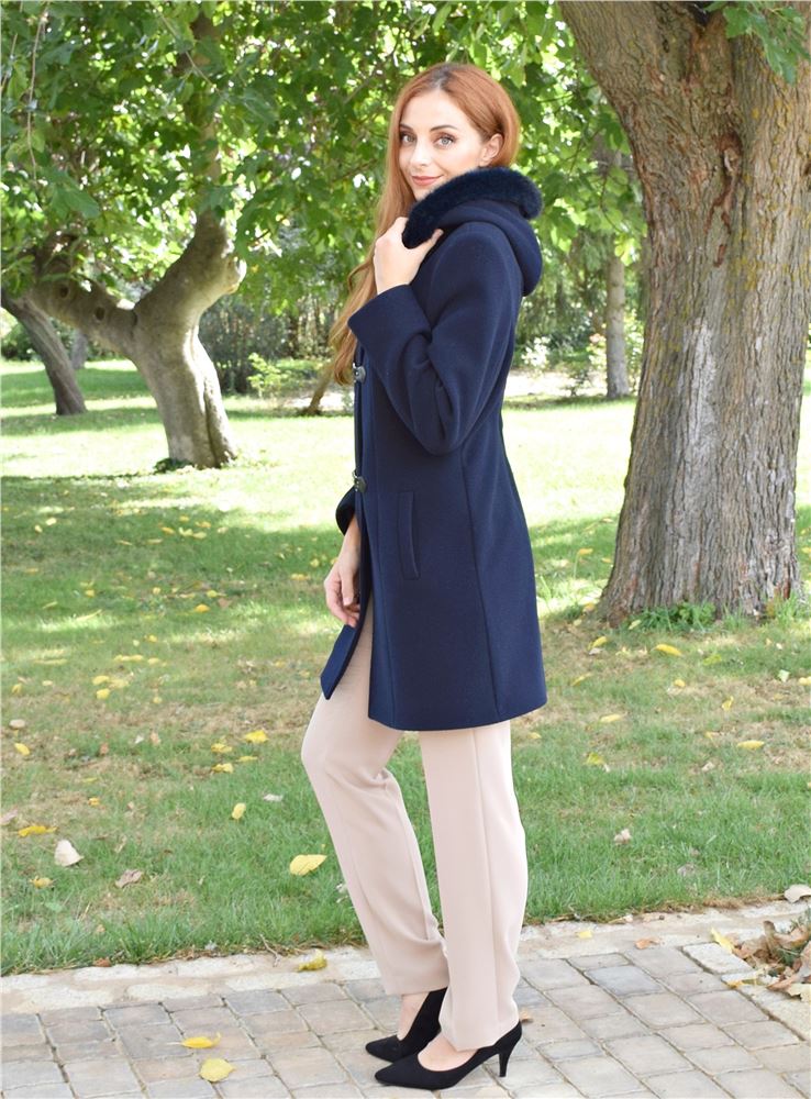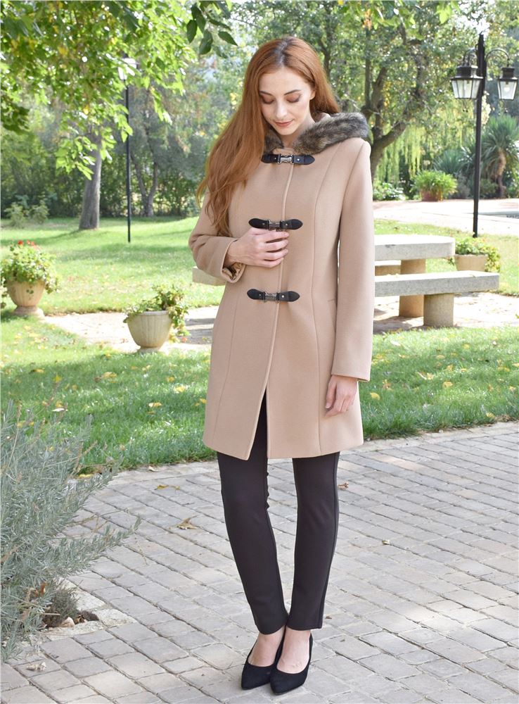 Trenka larga del fabricante Christina Felix confeccionada en paño liso. Capucha rematada con pelo sintetico.