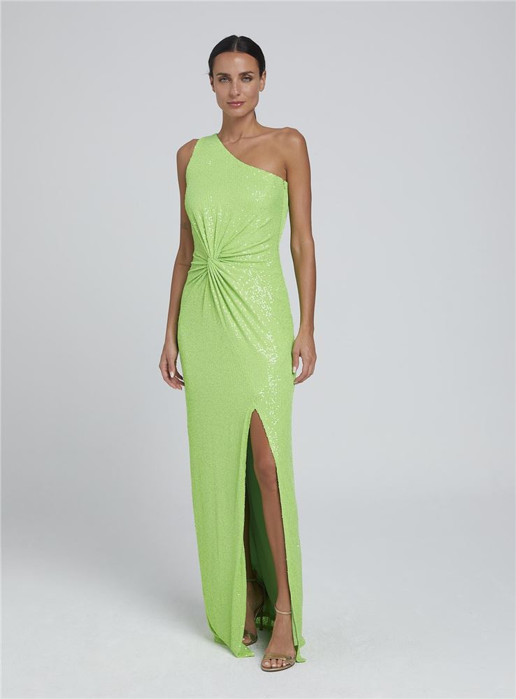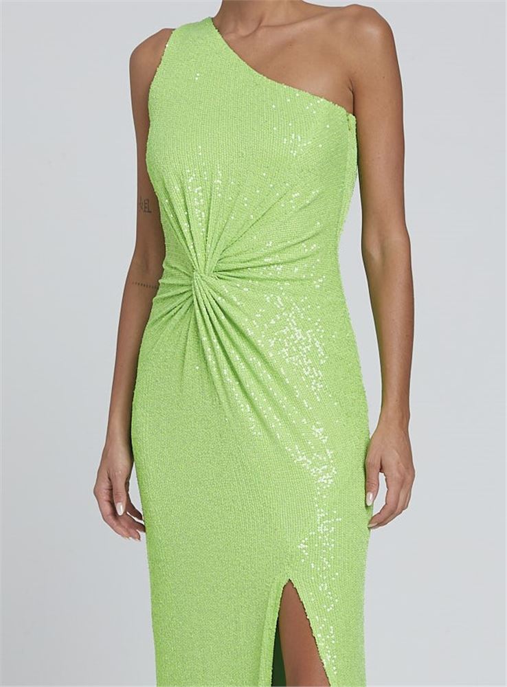 Confeccionado en cuello asimetrico, sin mangas, con amplio escote en espalda luce un elegante plegado en la cintura que ajusta el vestido a tu figura.