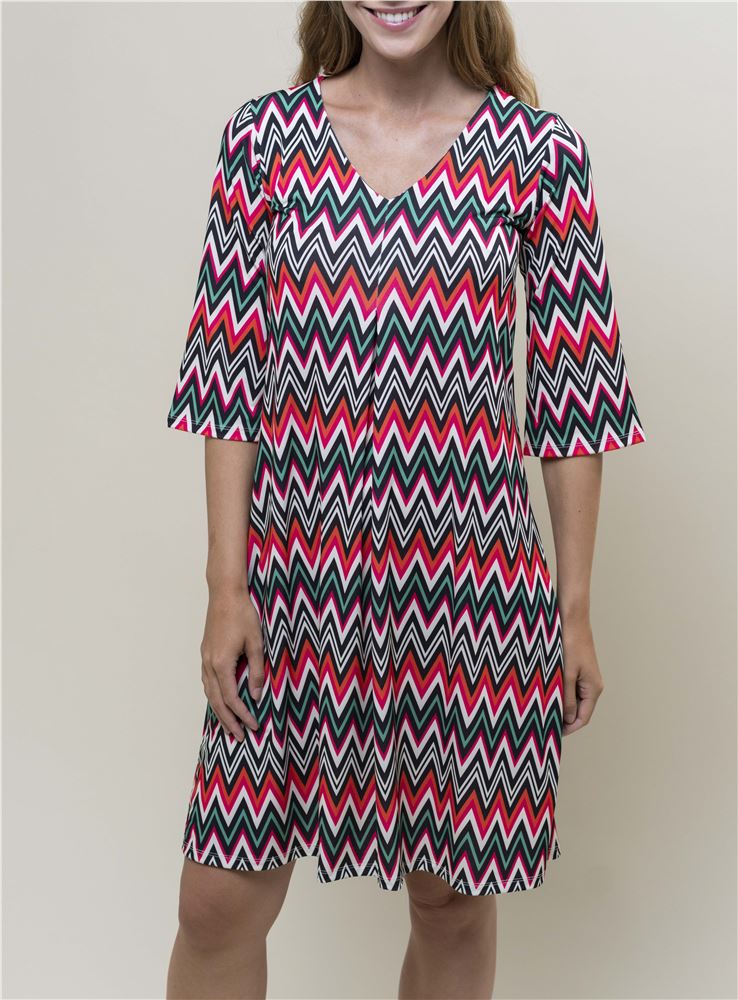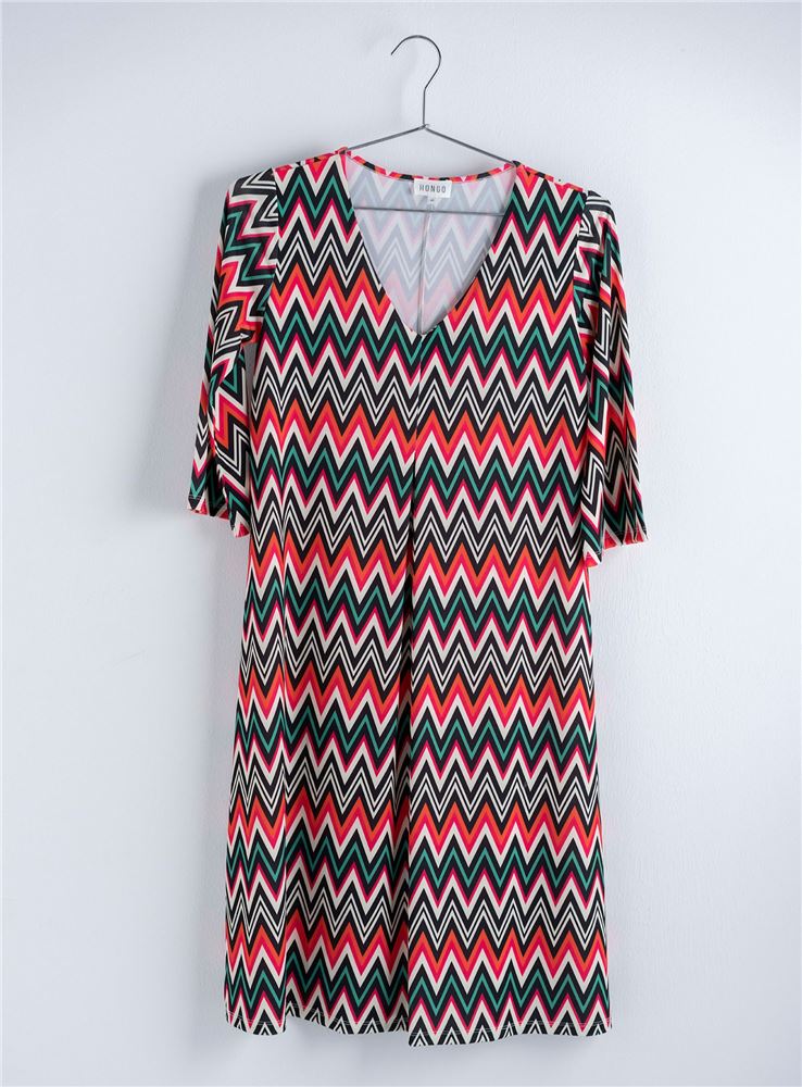 Confeccionado con tejido estampado con motivos Missoni combinando colores naranja, rosa, verde y negro.