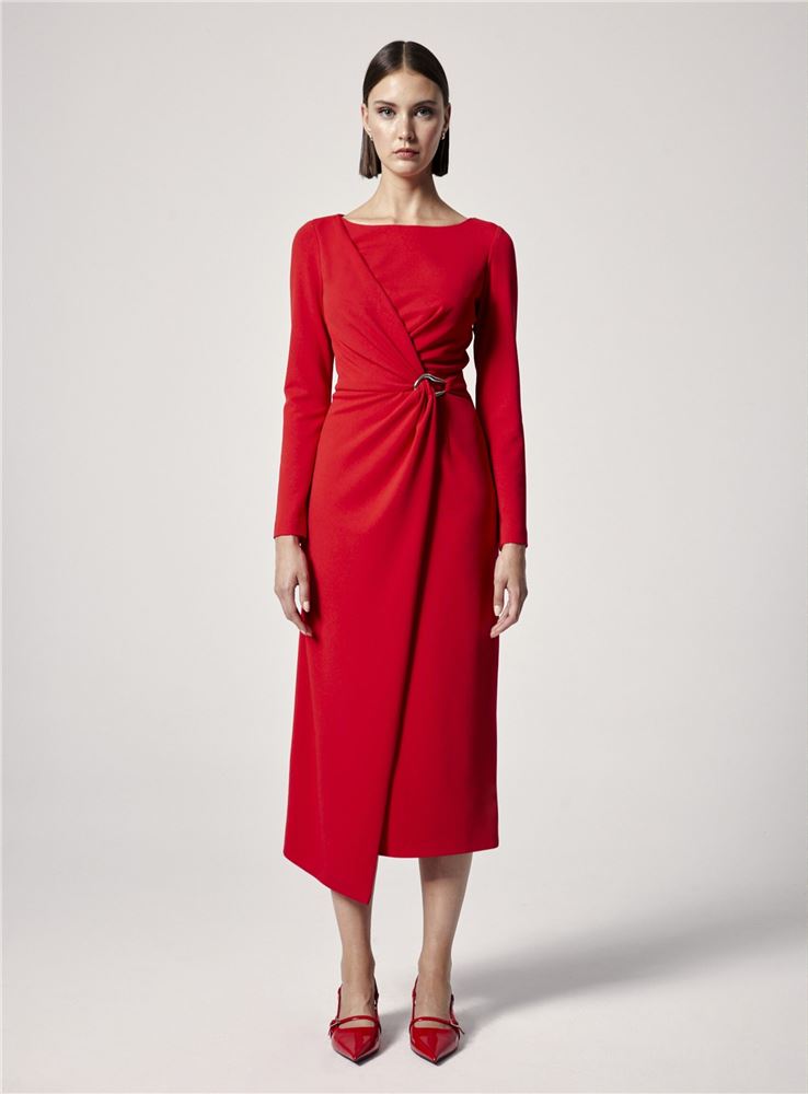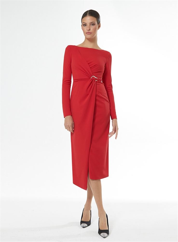 VESTIDO MIDI NUDO HEBILLA