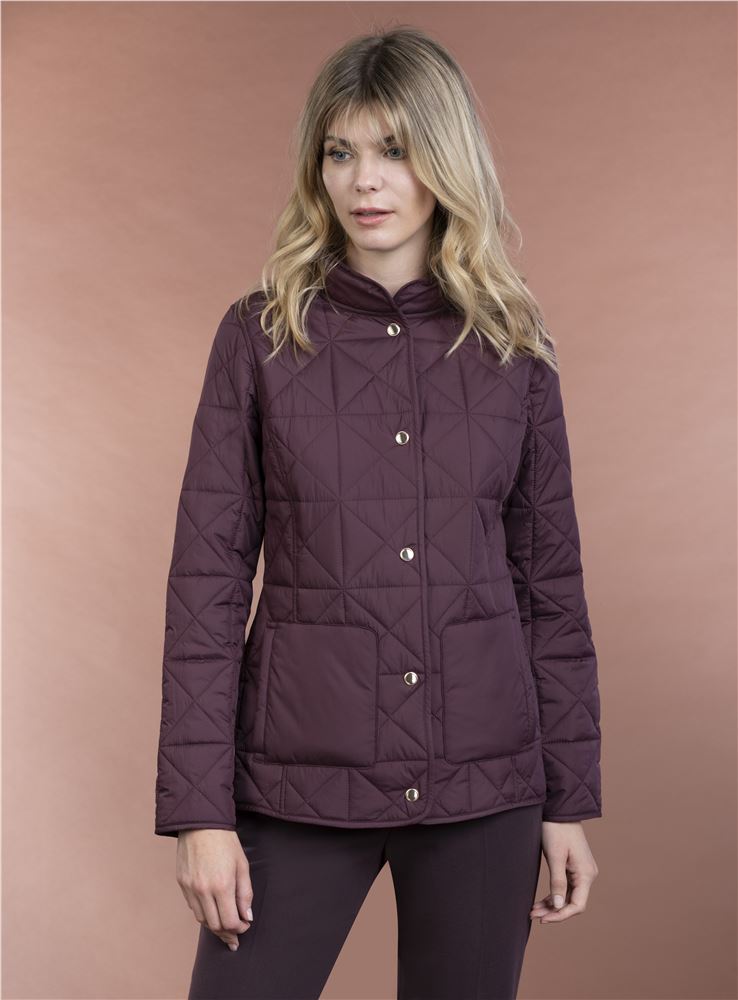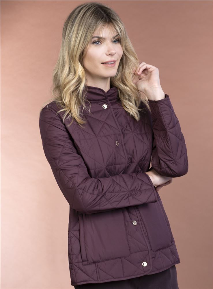 Fabricada con cuello de tirilla, bolsillos de parche por ambos lados y cierre mediante botones de presión dorados.