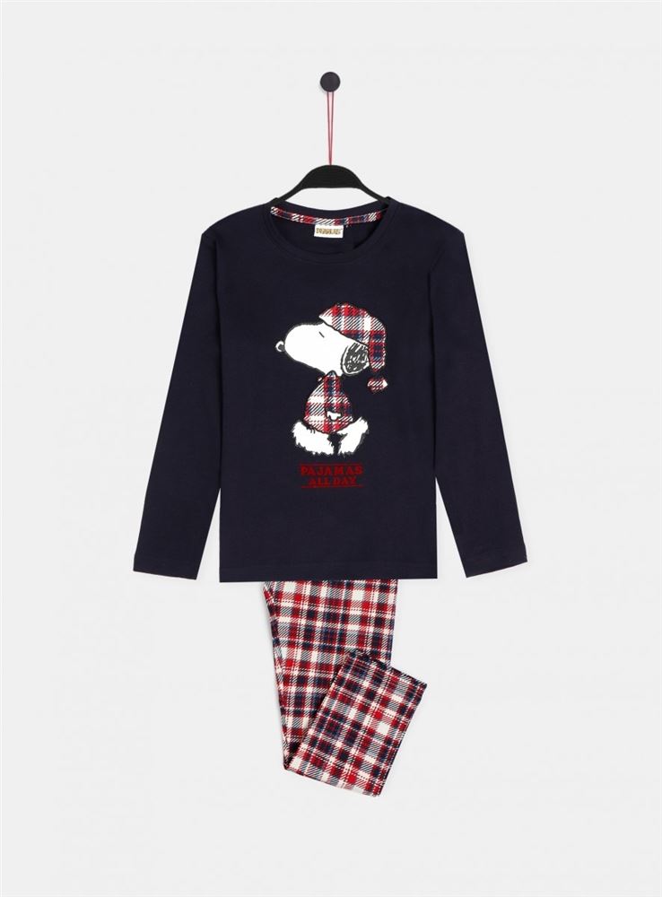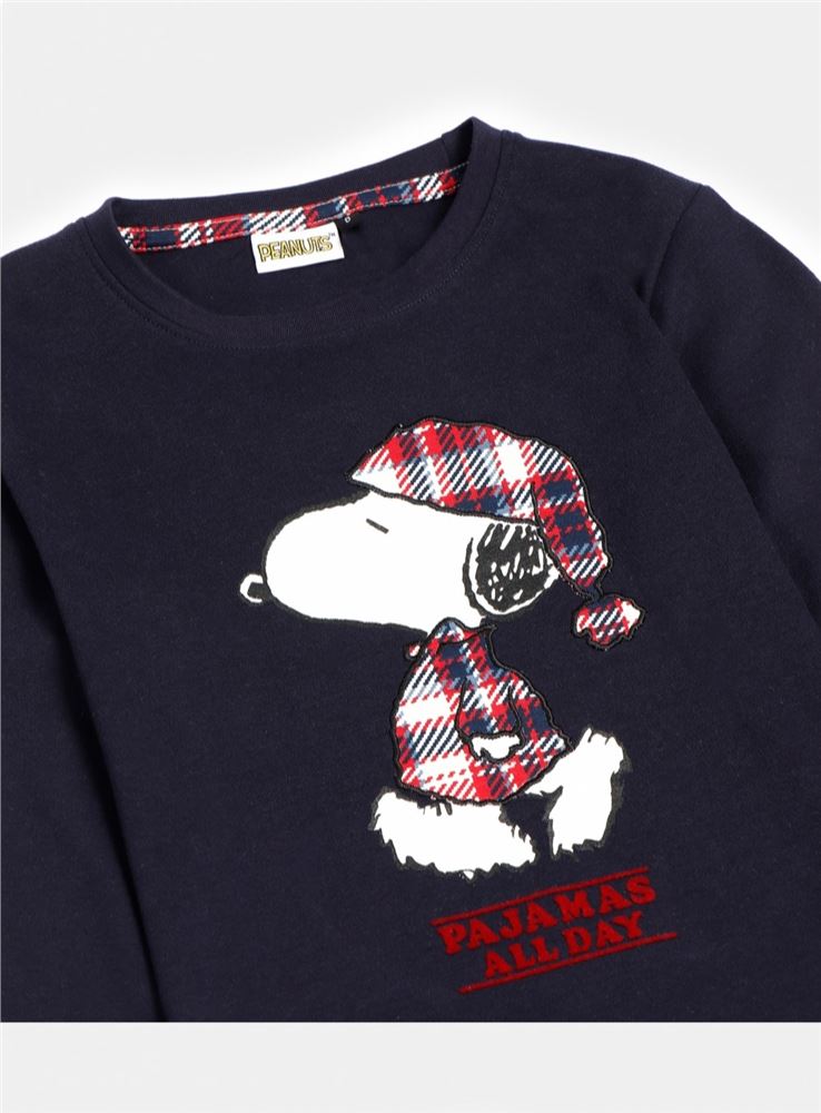 Pijama de diseño exclusivo de la coleccion PEANUTS, confeccionado por Aznar Innova en tejido de punto de algodon con manga larga.