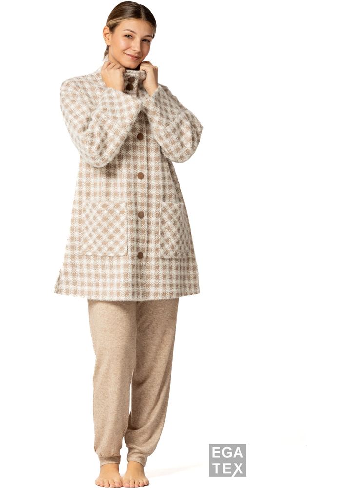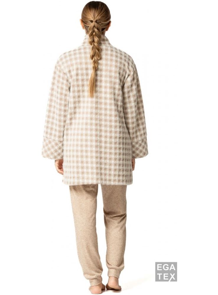Chaqueta de diseño exclusivo de la coleccion Homewear, confeccionado por Ega Tex en tejido de coral, con cuello semicisne y manga larga.