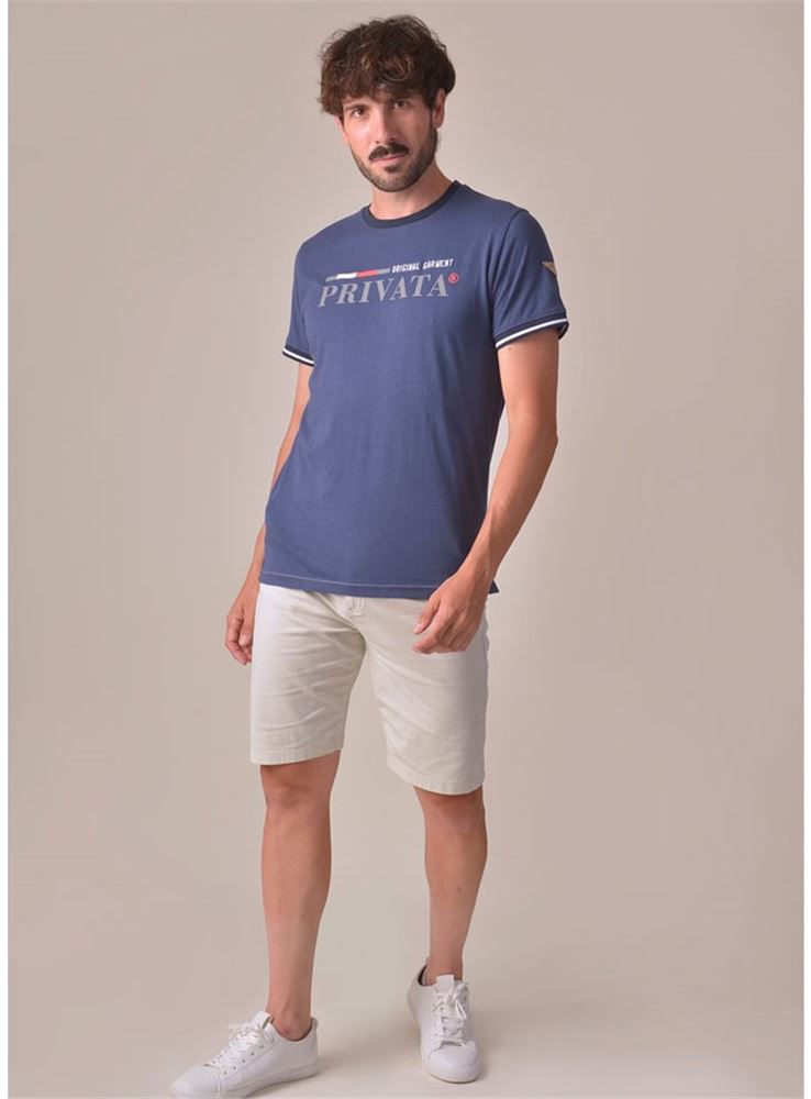 Camiseta corte regular de tejido punto liso color marino.