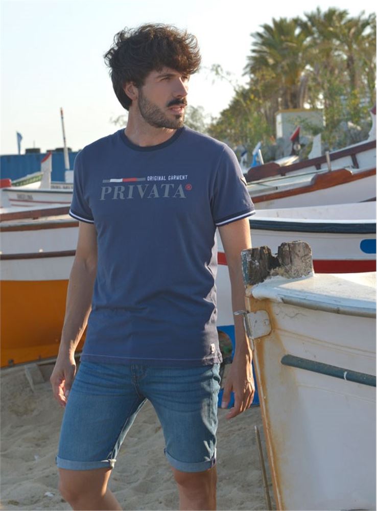 Camiseta corte regular fit confeccionada en tejido de punto liso color marino.