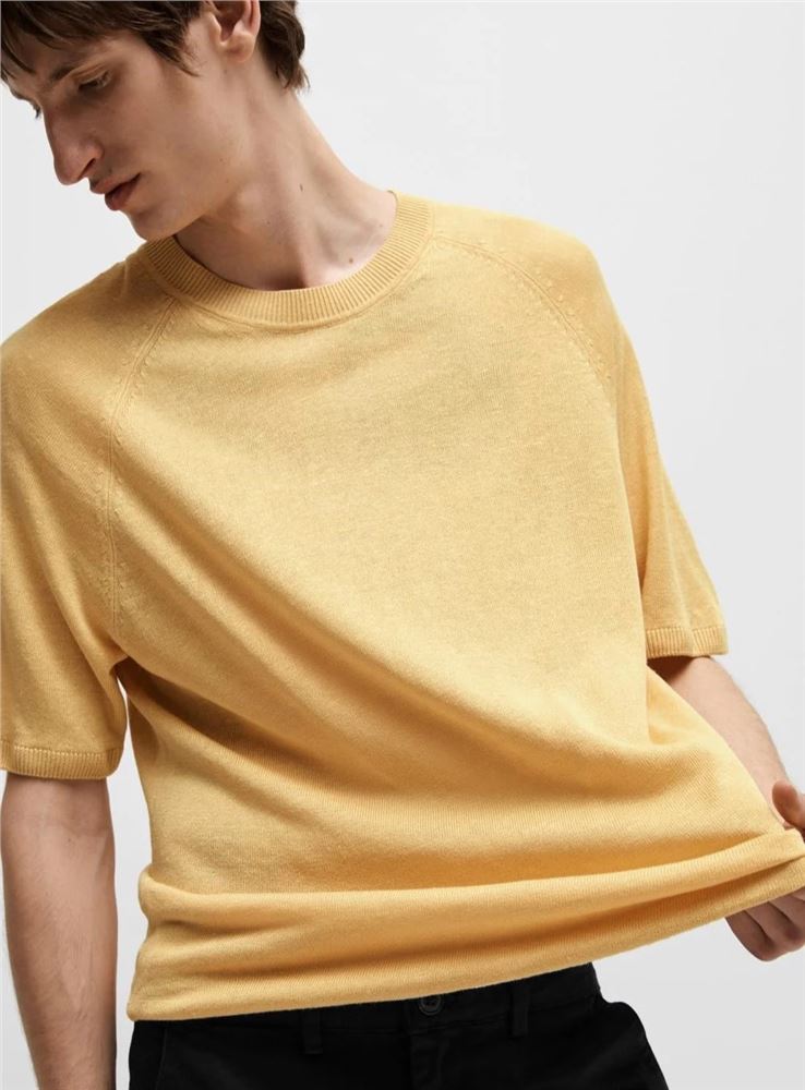 Prenda de tipo sport realizada en tejido de lino y viscosa LENZING™ ECOVERO™, en manga corta, de patrón Regular Fit.