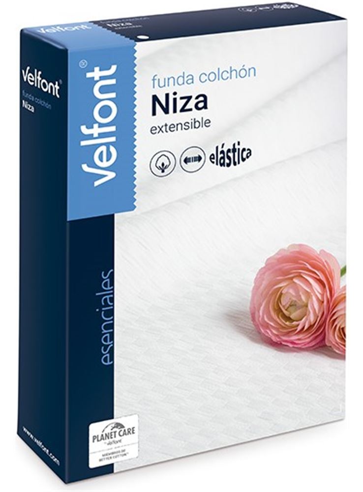 La funda de colchón Niza de Velfont está confeccionada con algodón que, combinado con el elastano, le proporciona una gran elasticidad y adaptabilidad a un tejido natural y altamente absorbente como es éste.