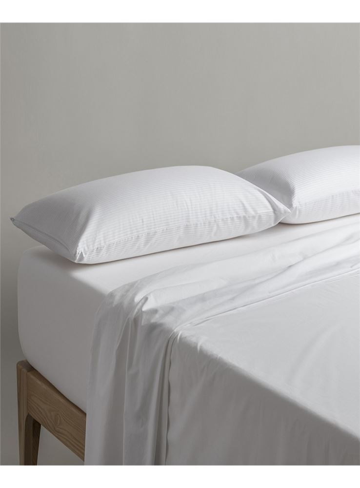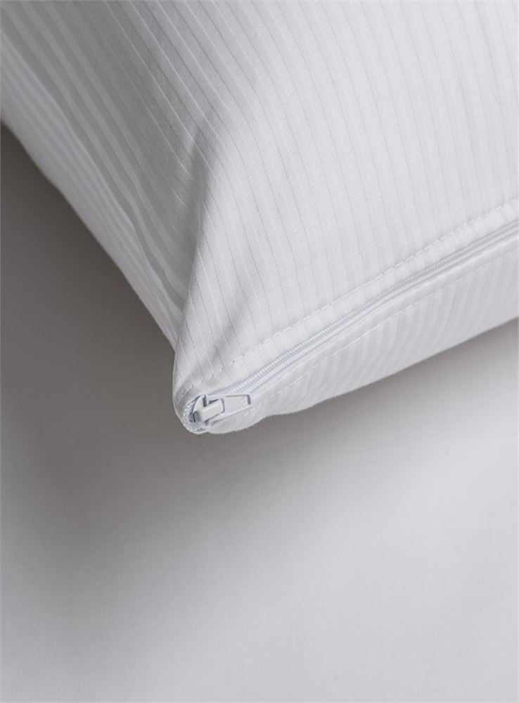 Además, la doble funda de esta almohada está confeccionada con tejido de algodón peinado de 200 hilos con un bonito diseño listado; la funda interior incorpora un tratamiento antiácaros científicamente testado y resistente a los lavados.