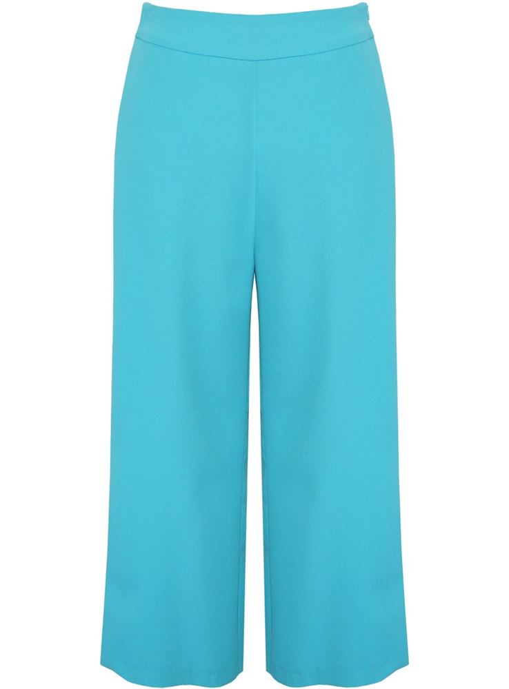 Pantalón de la firma Arggido. Corte capri de forma recta y pata ancha. Forma conjunto con nuestro "45540 CHALECO LARGO CRUZADO CUELLO SMOKING". Disponible en color turquesa