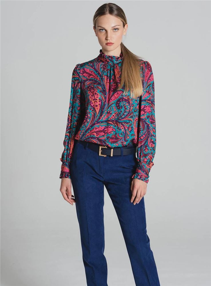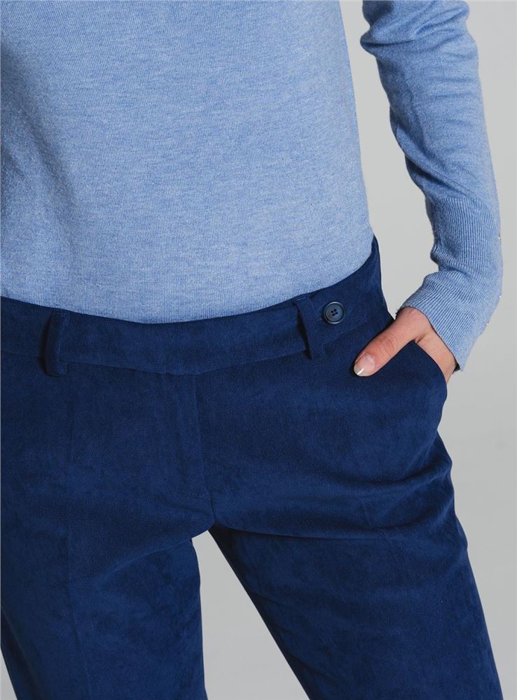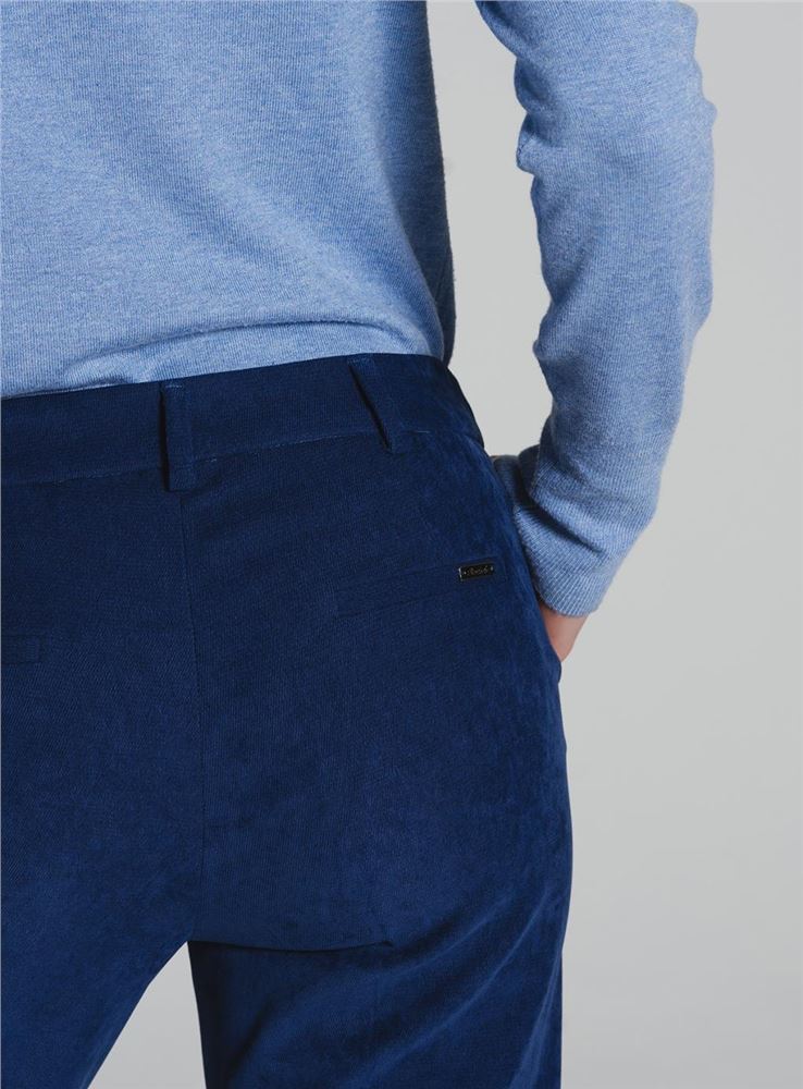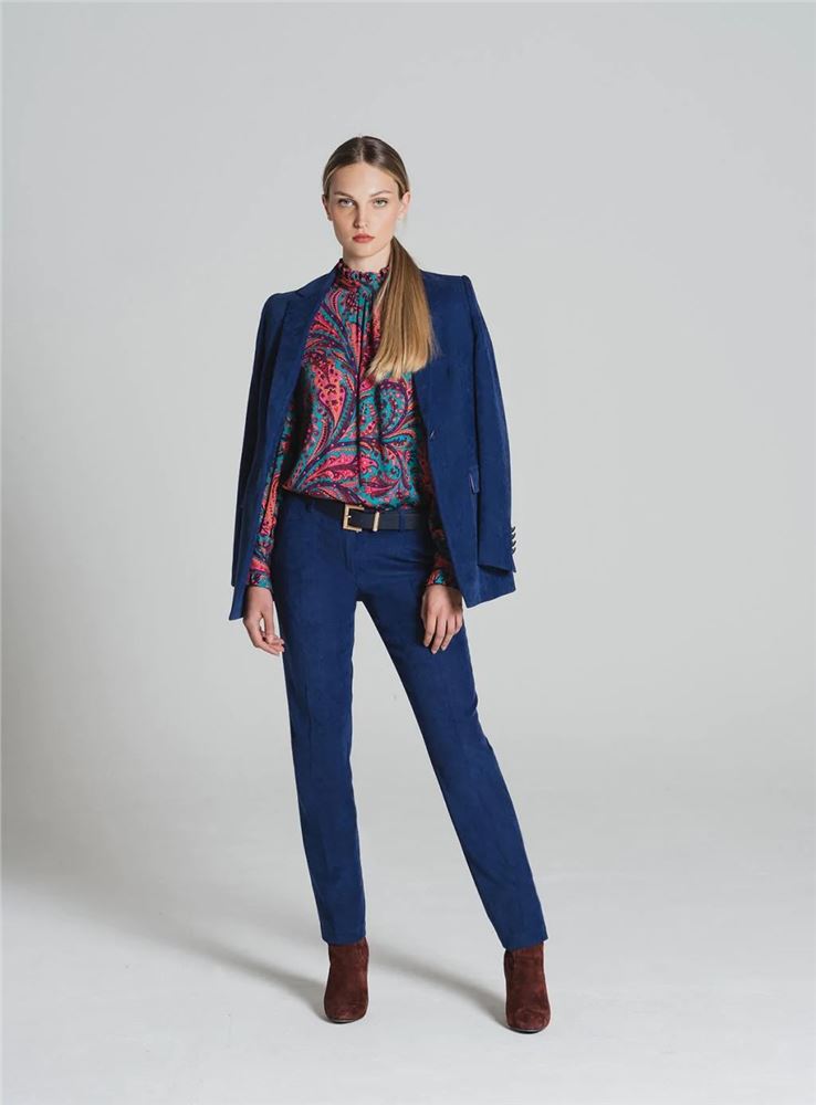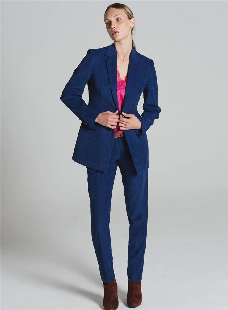 Pantalón recto de traje de tiro medio en tejido twill de terciopelo de la firma Tinta Style. Cintura con trabillas. Cierre frontal con cremallera oculta y botón desplazado al lado izquierdo. Bolsillos al canto en laterales y falsos bolsillo de ribete en parte trasera. Coordinación de traje con nuestra americana Elbrús. Hecho en España.
