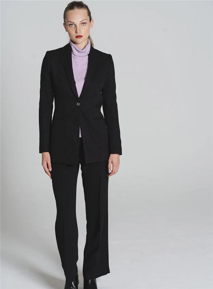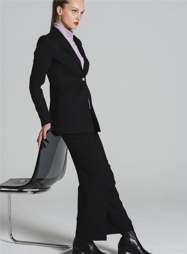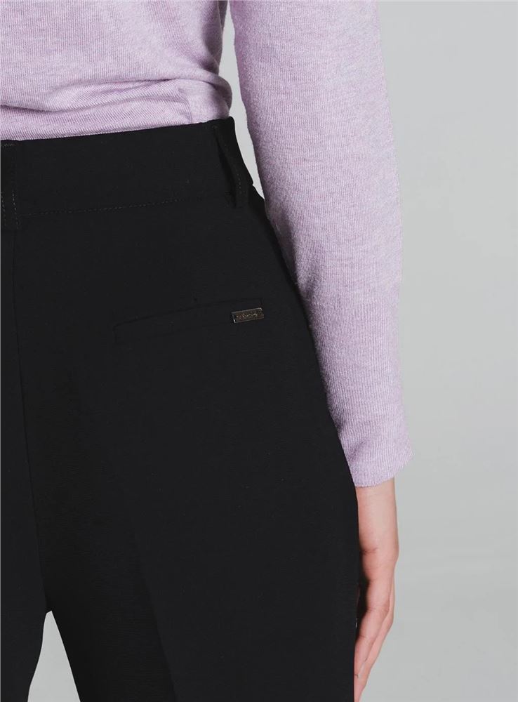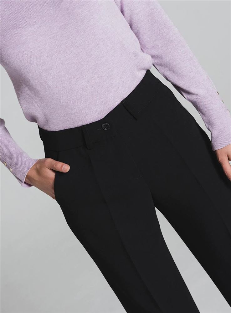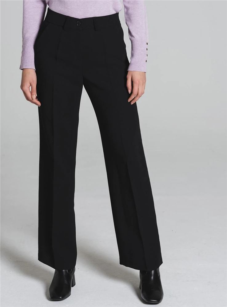 Pantalón fluido de corte recto y pata amplia con raya planchada de la firma Tinta Style. Tiro medio. Cintura con trabillas. Cierre frontal con cremallera oculta y botón. Bolsillos al canto en laterales y falsos bolsillo de ribete en parte trasera. Hecho en España.