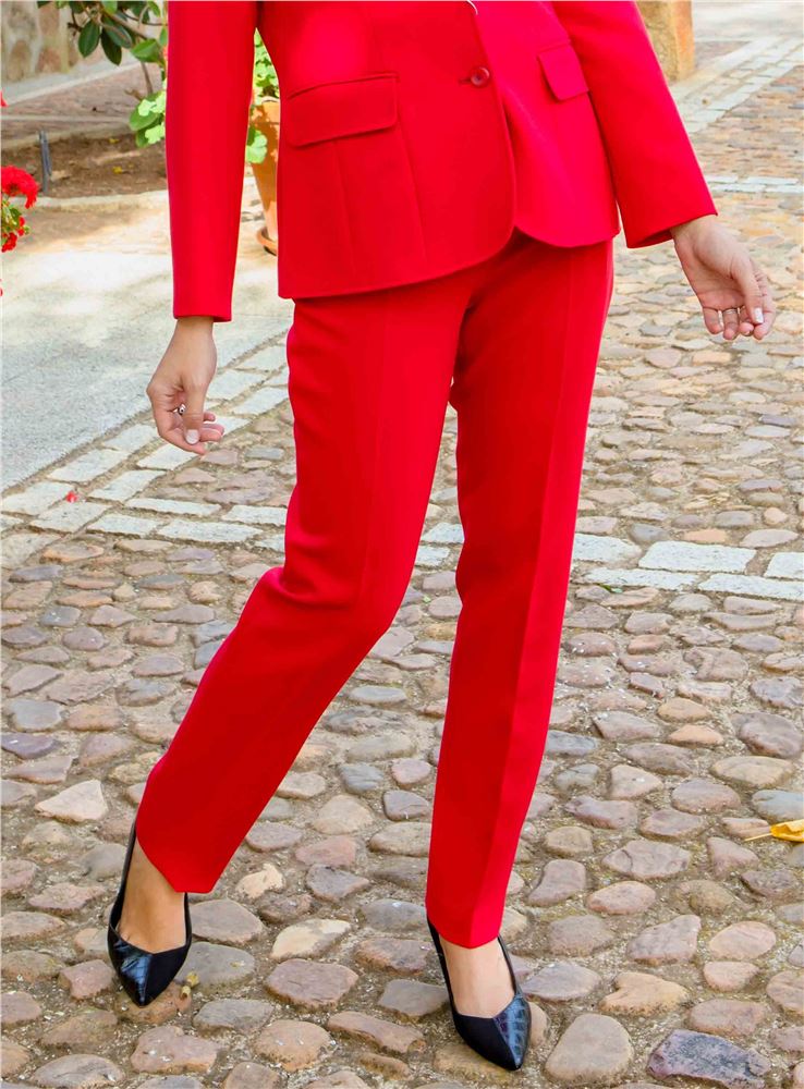 Pantalón clásico de vestir de la firma Christina Félix. Tiro alto. Pierna recta. Cierre con botón y cremallera frontal. Disponible en tres colores: Rojo, Azul Marino y Crudo. Dispone de chaqueta a juego con código: SE35110